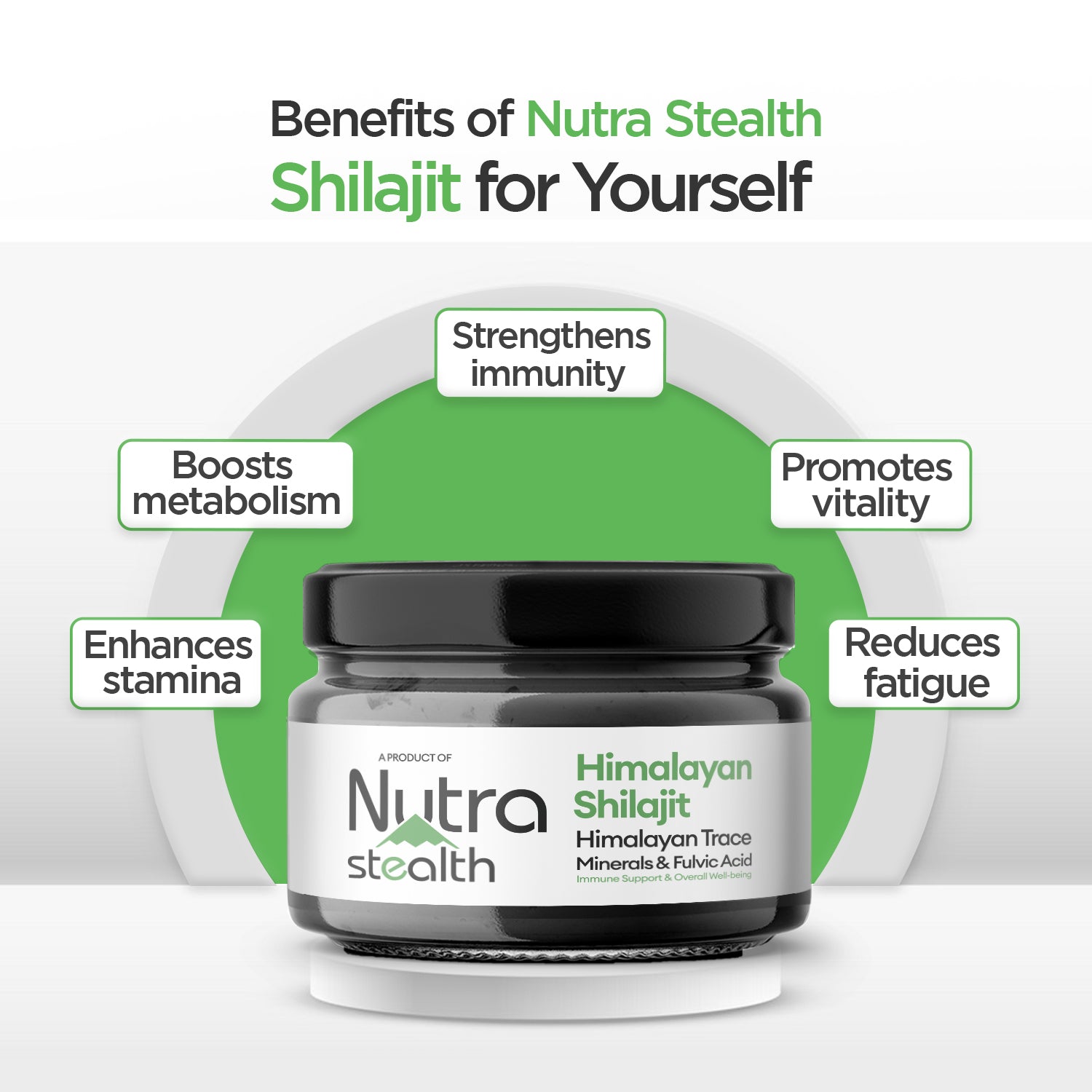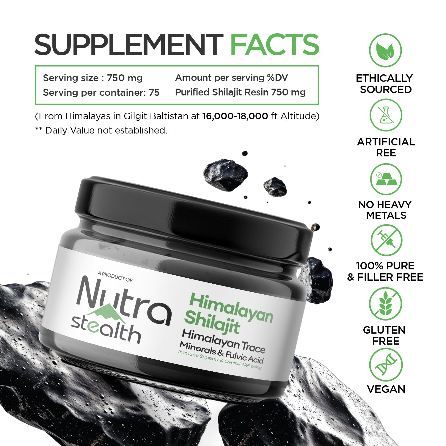 Revitalize your body and mind with Nutra-Stealth Shilajit — sourced from the high-altitude mountains of Pakistan, rich in fulvic acid and 85+ trace minerals. Pure, potent, and lab-tested for your daily wellness.